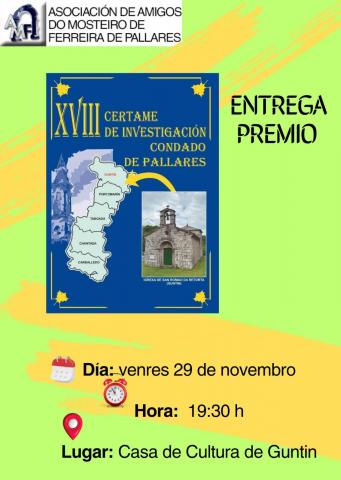 O premio está promovido pola Asociación de Amigos do Mosteiro de Ferreira de Pallares, coa colaboración da Consellería de Cultura da Xunta, da Área de Cultura da Deputación; dos concellos de Guntín, Taboada e Chantada, de Caixa Rural Galega e dos grupos de Desenvolvemento Rural Comarca de Lugo e Miño-Ulla.